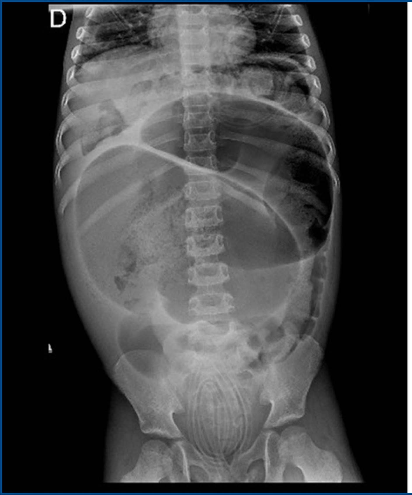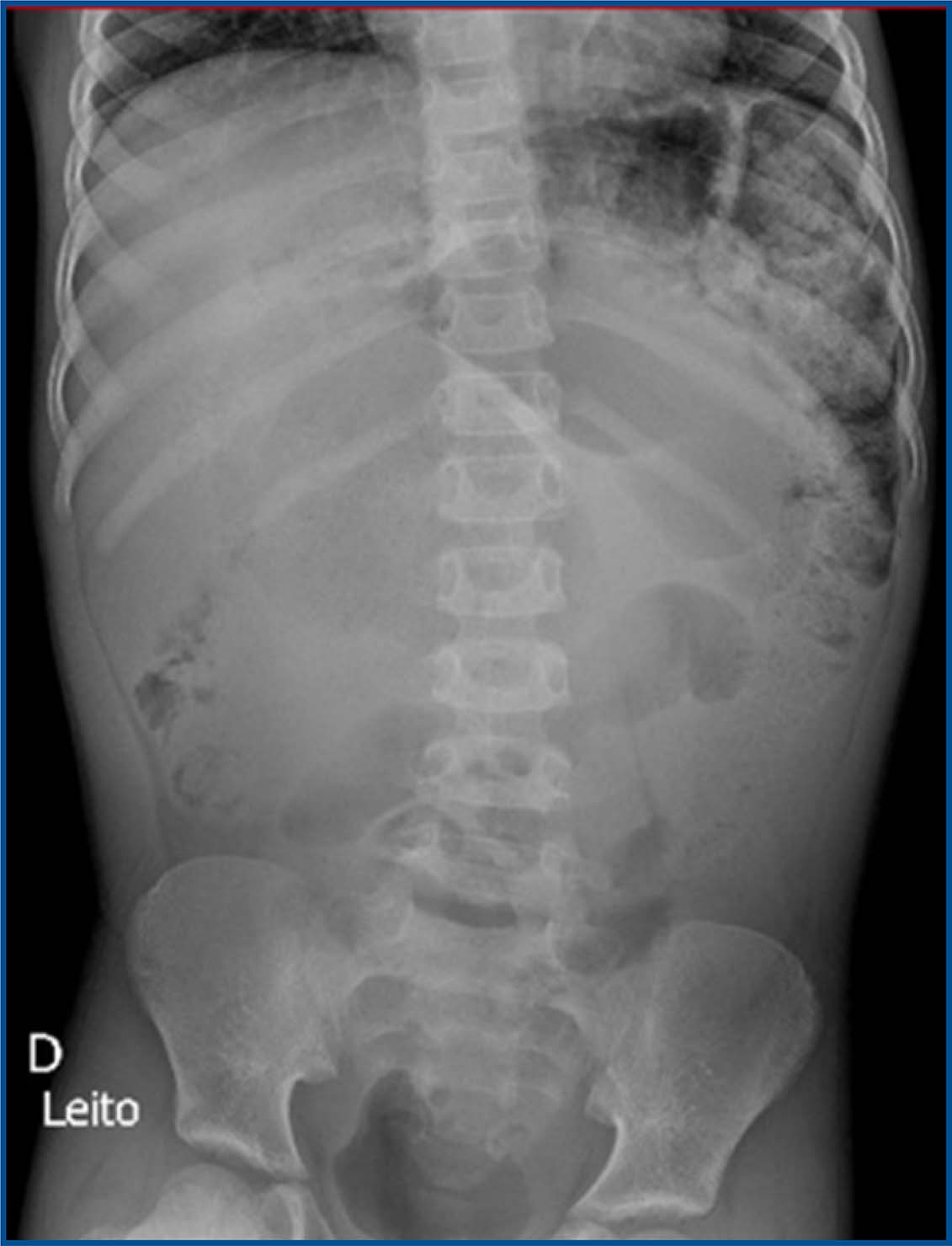 During the most recent outpatient visit, a significant fecal impaction was again identified, requiring surgical removal. Following the procedure, the patient remained hemodynamically stable, but experienced prostration, abdominal pain, poor oral intake tolerance, and diffuse abdominal tenderness on palpation, without signs of peritonitis. An abdominal X-ray was performed (figure 1), and the patient was started on a regimen of antibiotics, cessation of oral intake, basal maintenance fluids, and optimized analgesia.