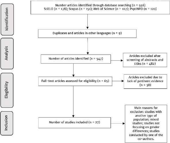 In view of the magnitude and adverse impacts of this problem, bullying is considered a public health problem and, to be effective, programs and interventions should take into account the characteristics of the actors involved, including aggressors and/or bystanders (UNESCO, 2019). Interventions should also consider issues related to observed differences between the sexes, since evidence shows that experiences of bullying differ considerably between boys and girls. However, literature reviews have yet to specifically address this topic. State-of-the-art literature reviews allow researchers to identify gaps in current knowledge and potential next directions for future research. In particular, the present study advances bullying research by synthesizing evidence addressed by theoretical studies, such as that conducted by Rose, Nickerson, and Stormont (2015).