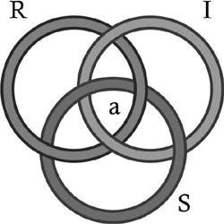 Assim, Lacan parte de das Ding, a falta constitutiva da espécie humana, inerente ao real em sua ex-sistência, e chega ao objeto a. É na articulação entre os registros, quando “a palavra mata a coisa”, que restará algo não simbolizável, um vazio de significado. Esse é o objeto a, que a lei simbólica vai delimitar e posicionar no centro do nó borromeano, na interseção entre o Real, o Simbólico e o Imaginário, conforme a figura 1: