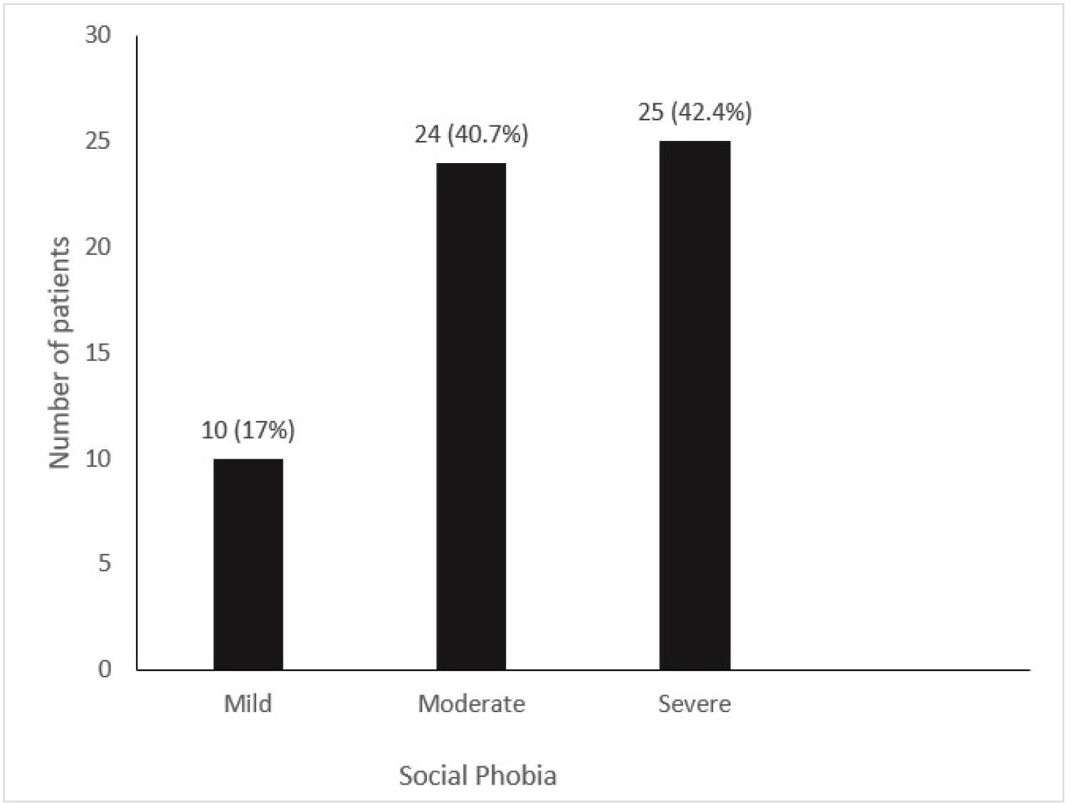 From 59 patients identified with SF, 17% had mild, 40.7% moderate and 42.4% severe, according to the LSAS scale (figure 1).